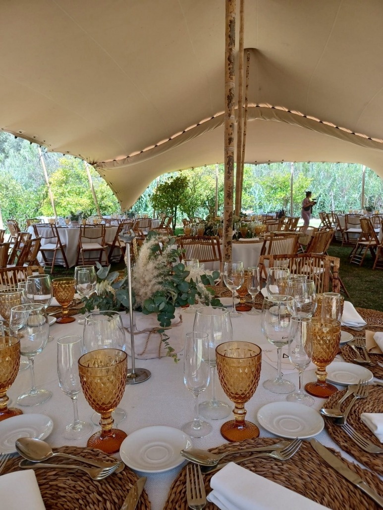 Si vuestra boda, es una boda intima con pocos invitados o por el contrario vuestra boda es una boda con muchos invitados, esta finca os ofrece varios espacios a elegir dónde celebrar vuestra Ceremonia Civil por ejemplo, o si lo que os gusta es tener un banquete divertido se me viene a la cabeza un banquete tipo Cóctel, igual os gusta para este momento la zona de la Piscina, o por el contrario lo que vosotros pensáis es un banquete más tradicional donde todos los invitados tengas su sito para sentarse y tomar su entrante y plato principal, igual os gusta más la zona de los naranjos donde poniendo bien; una carpa de bodas o unas estructura para quitar el sol, en esta zona lucen un montón, por último como en toda boda que se precie; terminar con una espectacular barra libre al aire libre ideal para vuestro fin de fiesta!!, y en este espacio hay dos zonas muy propias para disfrutarlas hasta que el cuerpo aguante, vosotros elegís la que más os guste, son espacios muy cuidado, que más os puedo contar?, creo que lo mejor es ir, y visitarlo.