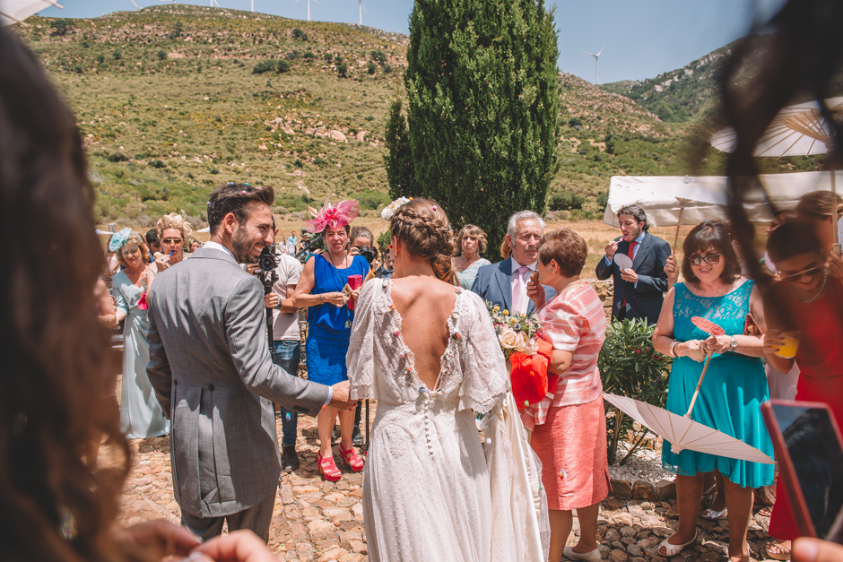 Todas y cada una de las parejas que acompañamos en este largo proceso que es la planificación de una boda para mi sois especiales, muy especial, todas me enseñáis algo y pasada la boda y los meses hablando con Jonathan nos contamos anécdotas de algunos momentos y nos reímos muchos, quizás con detalles que en ese preciso instante que ocurrían no era gracioso, pero con el paso del tiempo eso se convierte en anécdotas ocurrentes, os cuento; cuando en la boda de Beatriz y Rafa en Tarifa Rafa nos dijo montad la ceremonia civil que ya no llueve más, ” a pesar de que todas las previsiones decía lo contrario, que llovería en media hora”, y así fue, tal como predijo winguru llovía en tiempo exacto, todo se mojo, las sillas empapadas, la mesa mojada, la alfombra ya os la imagináis, bien no nos quedo otra que ponernos a secar todo con paños secos, todo rápido ya que los autocares llegaban con los invitados, pero como esas cosas increíbles que pasan en primavera y en la bodas donde hay tanto amor, tras el chaparrón la tarde se convirtió en una hermosa tarde con una estupenda puesta de sol, fue una boda increíble, o aquella vez que buscando establecimientos para Dani y Lidia él me dijo muy convencido al encontrar una preciosa casa rural, “Toñi, yo quiero esto pero en la playa”, finalmente elegían un bonito rincón en Sotogrande para darse el Si Quiero. Recuero aquella vez que Susana y Borja decidieron venir de Sevilla a Tarifa para subir a la capilla que había elegido para disfrutar de su hermosa ceremonia civil, en esa ocasión yo llevaba una silla de madera blanca plegable que ellos me habían pedido que llevase, Borja quería medir in situ cuantas sillas cabían en total, pues quería el mayor número de invitados sentados y que todos desde su sito pudiesen ver a los novios, con tanto medir y hablar nos dio un poco el atardecer y casi la noche, en medio campo que nos encontrábamos apareció un becerrillo perdido, todo el tiempo berreando y acercándose cada vez más a nosotros, ay! que miedo pasamos cuando la madre, la Señora Vaca vino a buscarlo, salimos corriendo hacia el coche, a mi me faltaba piernas para correr, el coche estaba a tan solo 5 ó 7 metros que me parecieron los más largos que he corrido nunca. Ahora en la distancia todas estas anécdotas y muchas más vivencias me parecen tan simpáticas que me provocan mucha risa, contándonosla y recordándolas, las risas nos alegran el alma y hay pocas cosas que nos hagan sentir tan bien como esas carcajadas sinceras que nos saltan las lagrimas de la risa, así que con esta última anécdota de Borja y Susana os traigo sus fotos que ya colgamos hace un tiempo, pero la boda de ellos fue muy especial por todo el cuidado que ellos invirtieron, por todo el amor que ellos nos supieron dar, por el día tan maravilloso y por los estupendos fotógrafos que inmortalizaron aquel día y aquella preciosa boda.