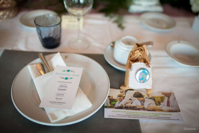Las galletas son 100% personalizadas y a gusto de los novios, perfectas para disfrutar en cada ocasión. ¿Lo mejor? Pueden durar hasta cuatro meses. Perfecto para disfrutarlas con tranquilidad. Un proceso creativo de lo más dulce, que encantó a todos nuestros invitados. ¡En la originalidad está el gusto! y si es dulce, mejor.Nuestra especial mención a la Fundación Down Madrid que hizo entrega a nuestros invitados de un detalle muy especial con fines solidarios. Se trata de unos jabones que hacen los chicos con síndrome de down en las terapias de integración social.