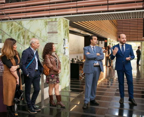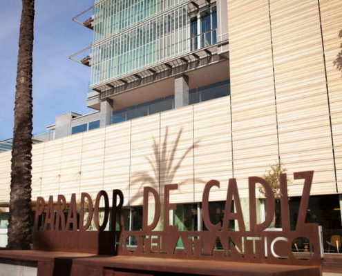 Nuestros invitados se dieron cita por la mañana en las instalaciones del Parador de Cádiz para dar comienzo a la visita. Eduardo Oriola, director del Parador y José Ignacio Herrera, responsable de bodas en el Parador, nos recibieron y enseñaron todas las instalaciones perfectamente adecuadas para una ocasión especial. Y es que todos los salones del Parador tienen vistas al mar. Un lugar de arquitectura moderna donde convergen en armonía líneas vanguardistas orientadas a la naturaleza. ¿El resultado? Un lugar acogedor y muy especial, en el que no faltan las mejores comodidades y servicios para una boda inolvidable.