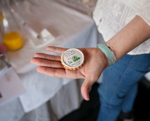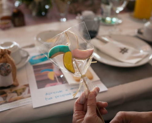 El día tocó a su fin de la forma más dulce posible, con las galletas de Galletea. Un taller en el que decorar exquisitas galletas de mantequilla con papel comestible y glasa, personalizadas al detalle. Todo con ingredientes naturales, estas galletas son de lo más sencillas de hacer, te guste o no la cocina. Son además un detalle único para regalar a los invitados y amigos y perfectas también para un candy bar o corner de dulce.