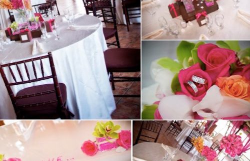 Soy de la idea que hay que arriesgar un poco el día de la boda, y que buen momento para hacerlo en la decoración del establecimiento, es cierto que hay muchos tipos de bodas y no en todas se podría aplicar una decoración con mucho color, pero para aquellas que el establecimiento y los novios lo permitan, os muestro algunas fotos con una explosión de color en la decoración de las mesas del banquete de boda.